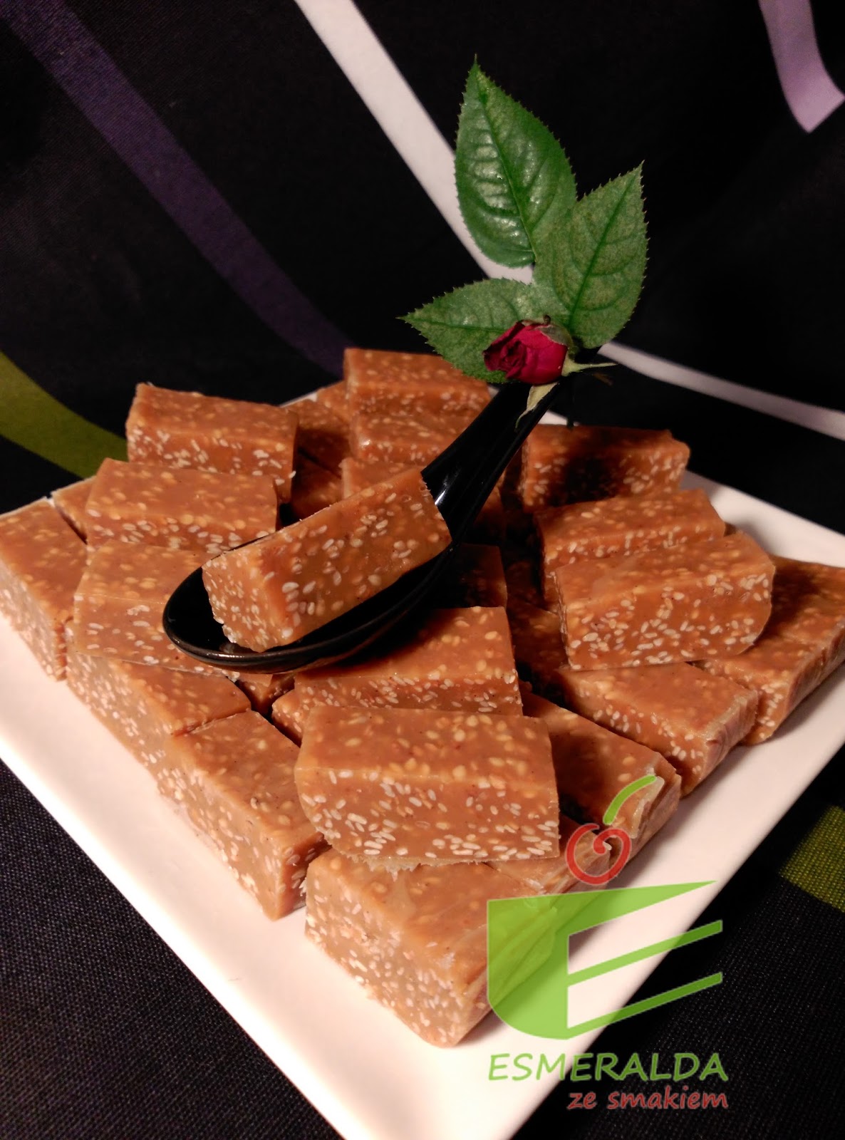 Krówki to moje ulubione łakocie z dzieciństwa. Robiłam już krówki czekoladowe oraz cudowne ciagutki, Teraz chciałam zrobić krówki lodowe Danusi, jednak z przyczyn technicznych, jej krówki będa musiały jeszcze troche poczekać. Do ugotowanej, domowej masy kajmakowej dodałam sezam i wyszły mi bardzo smaczne krówki sezamowe. Polecam.